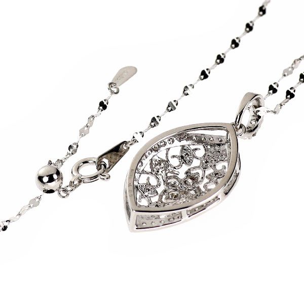 トータル0.55ctのダイヤモンドを贅沢に使用した、豪華なペンダントネックレスです。繊細なミルグレインをふんだんに施した透かし模様が美しいアンティークレーススタイルのデザイン。ふんわりとしたロゼンジモチーフが胸元を魅力的に飾ってくれます。きらきらとしたチェーンは取り外し可能ですので、それだけでも使い勝手の良い一本。ワンランク上のおしゃれを演出してくれる、華やかでエレガントなダイヤモンドジュエリーをお楽しみください。
