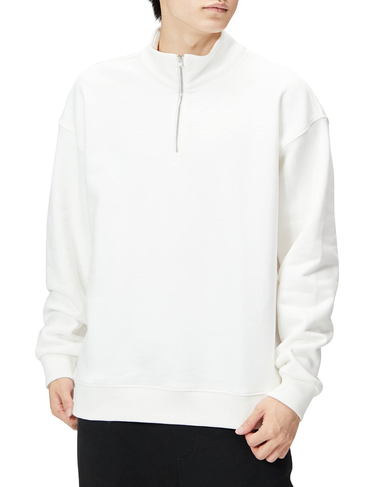 12オンスのヘビーウェイトのハーフジップトレーナー!綿100%の生地に裏地はパイル(裏毛)。ゴワつきもなく着心地抜群です!