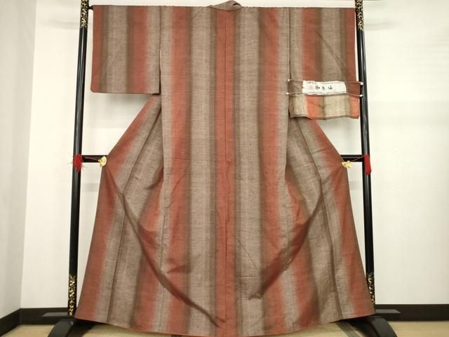平和屋着物 珈琲紬 泥染め 間道 反端付き 正絹 ck
