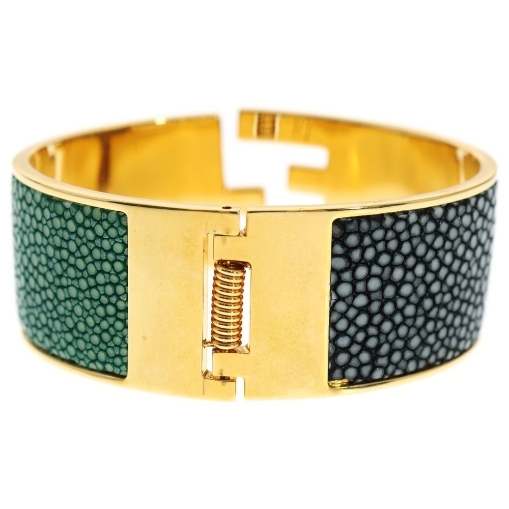 【品名】FFロゴ バングル ブレスレット ゴールド×ブラック×グリーン GP