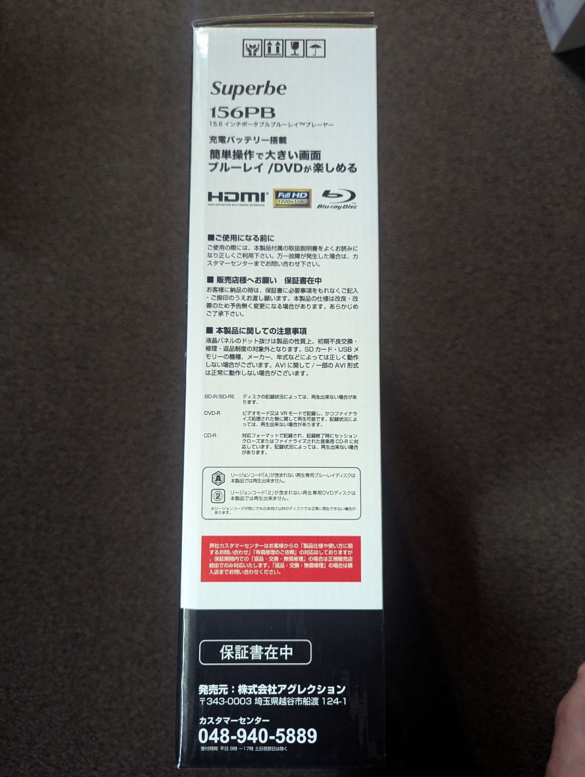 アグレクション 15.6インチ ポータブル ブルーレイプレーヤー 156PBです。