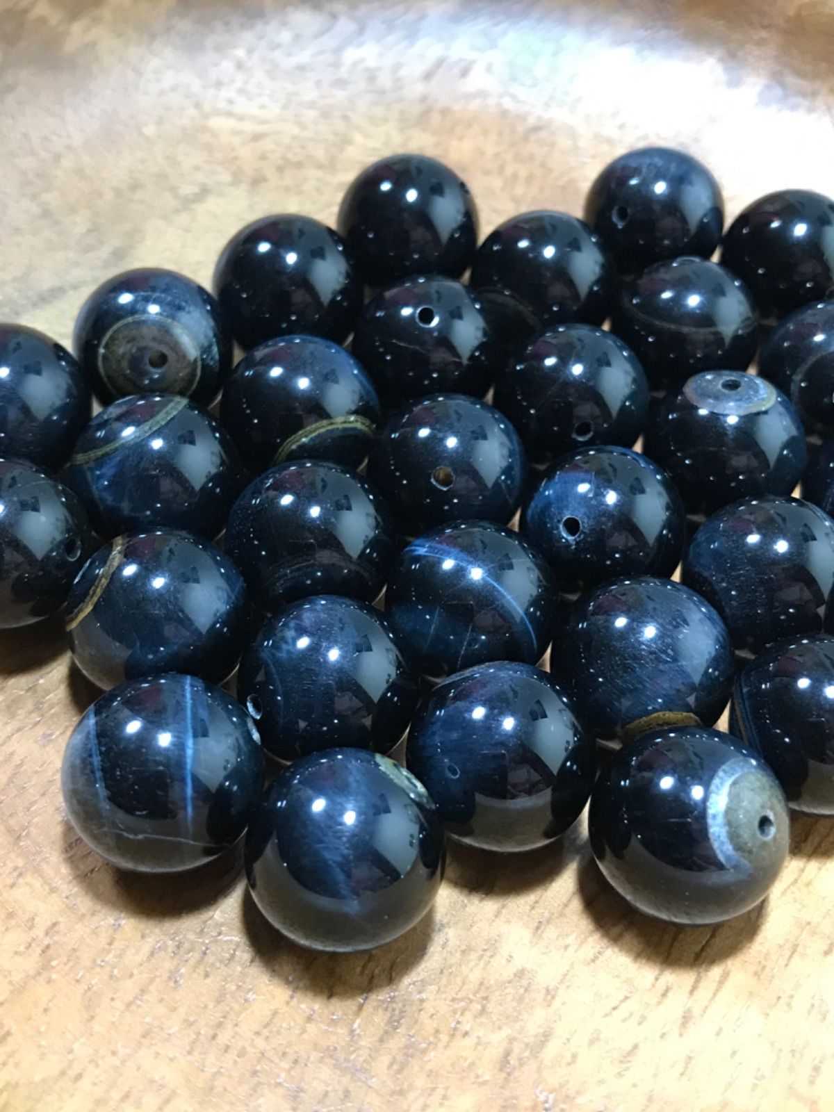 14mm玉【ホークスアイ/鷹目石】1mm穴パーツ30個