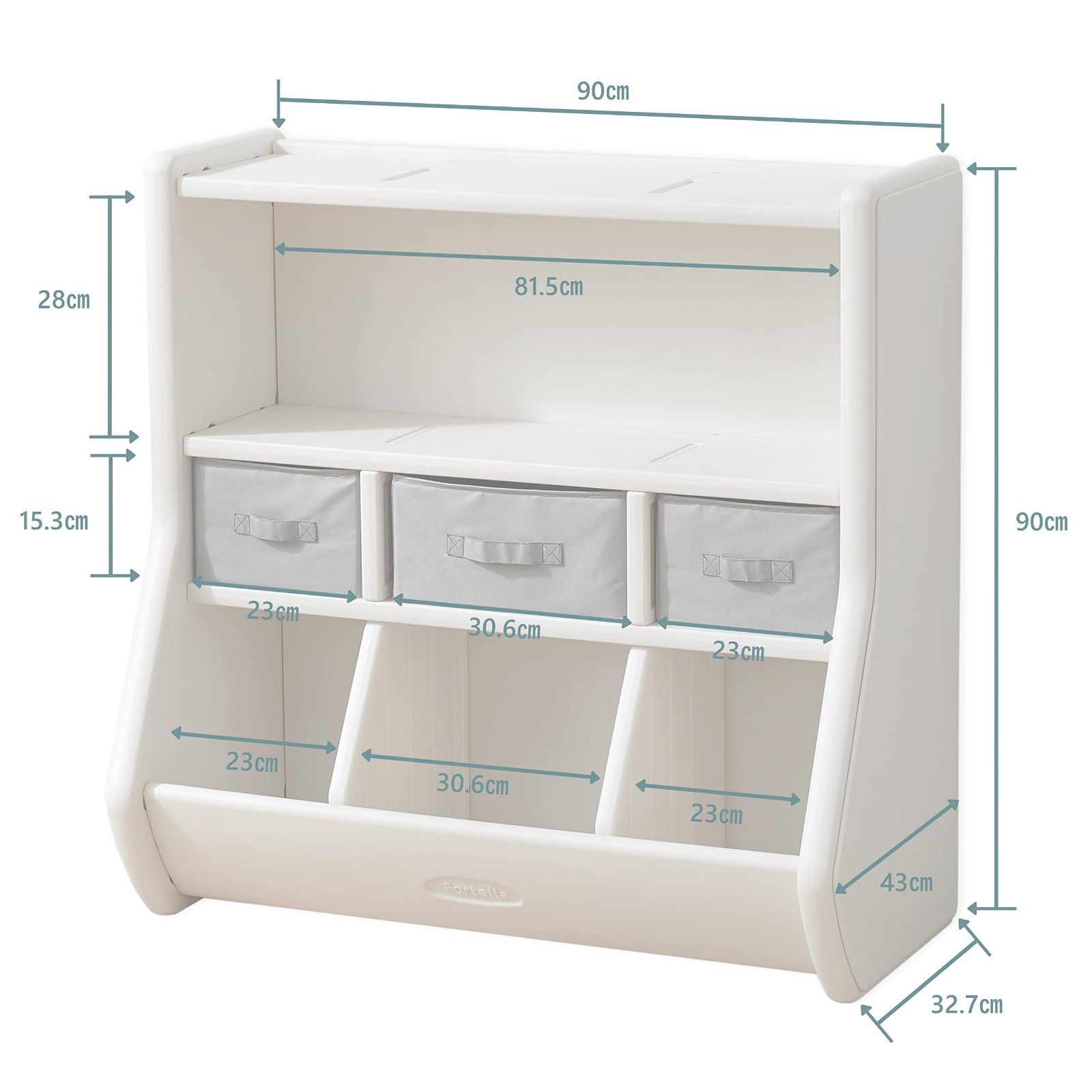 収納 大容量 おもちゃ 絵本棚 本棚付き ラック おもちゃ箱 組み立て式 Fortella 幅90x奥行43x高さ90㎝