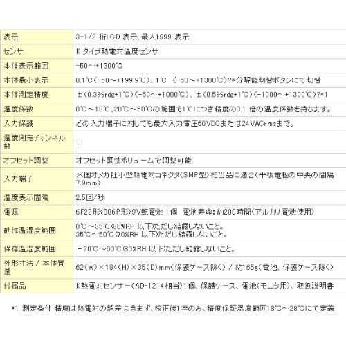商品 A D Kタイプ 熱電対温度計 AD 5601