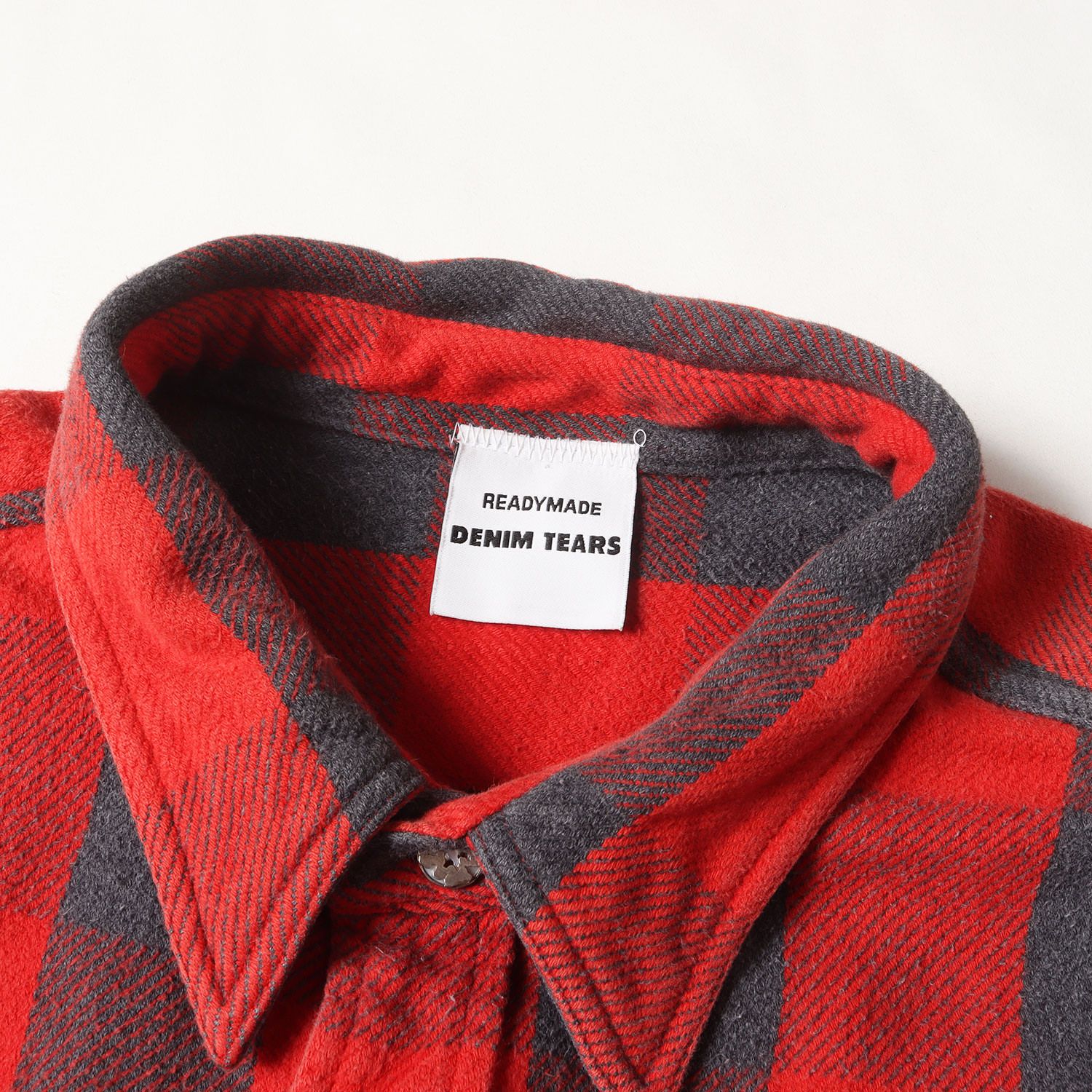 レディメイド シャツ 赤 黒 レッド ブラック サイズ 2 | 23 SS ×DENIM TEARS ヴィンテージ リメイク フラワー刺繍 オーバーサイズ ネルシャツ CHECK SHIRTS 半袖 メンズ
