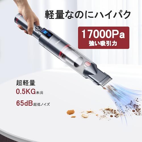 SmartAI ハンディ掃除機 コードレス 車用 19000 Pa 強力吸引 30分連続稼働 OLED画面付き 電池残量表示 200 ml 大容量 ハンディクリーナー 0.5 kg超軽量 静音 小型 業務用 キーボード掃除 車内清掃 家具 家庭用