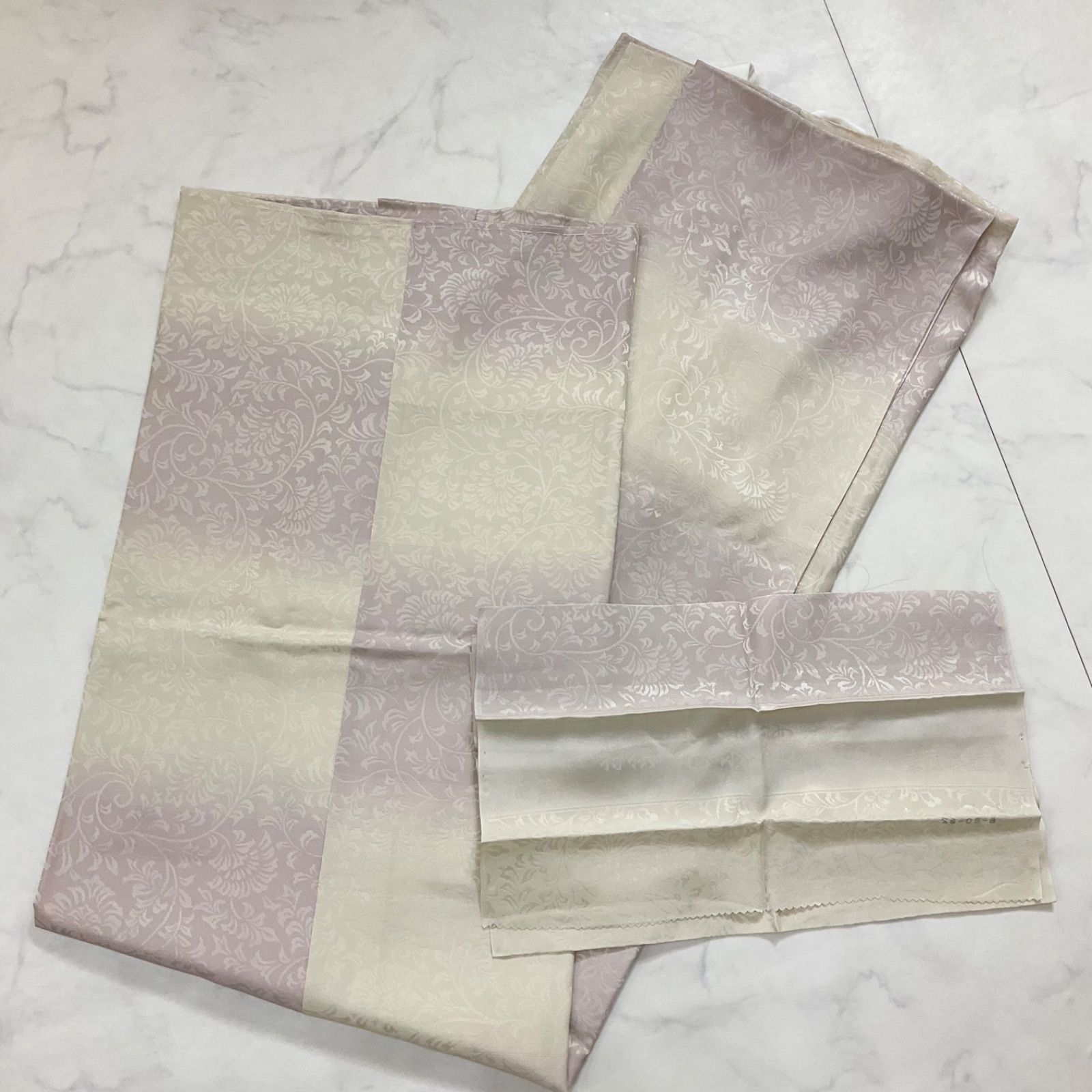 kimono+one◆未使用同然◆特選◆西陣先染襦袢◆長襦袢◆仕付け糸付き◆ガード加工◆やまと誂製◆余り布付◆単衣◆居敷当て付き◆白半衿付◆薄紫◆クリーム◆裄70肩丈133◆小紋紬附下訪問着留袖袷単衣夏着物◆K1150