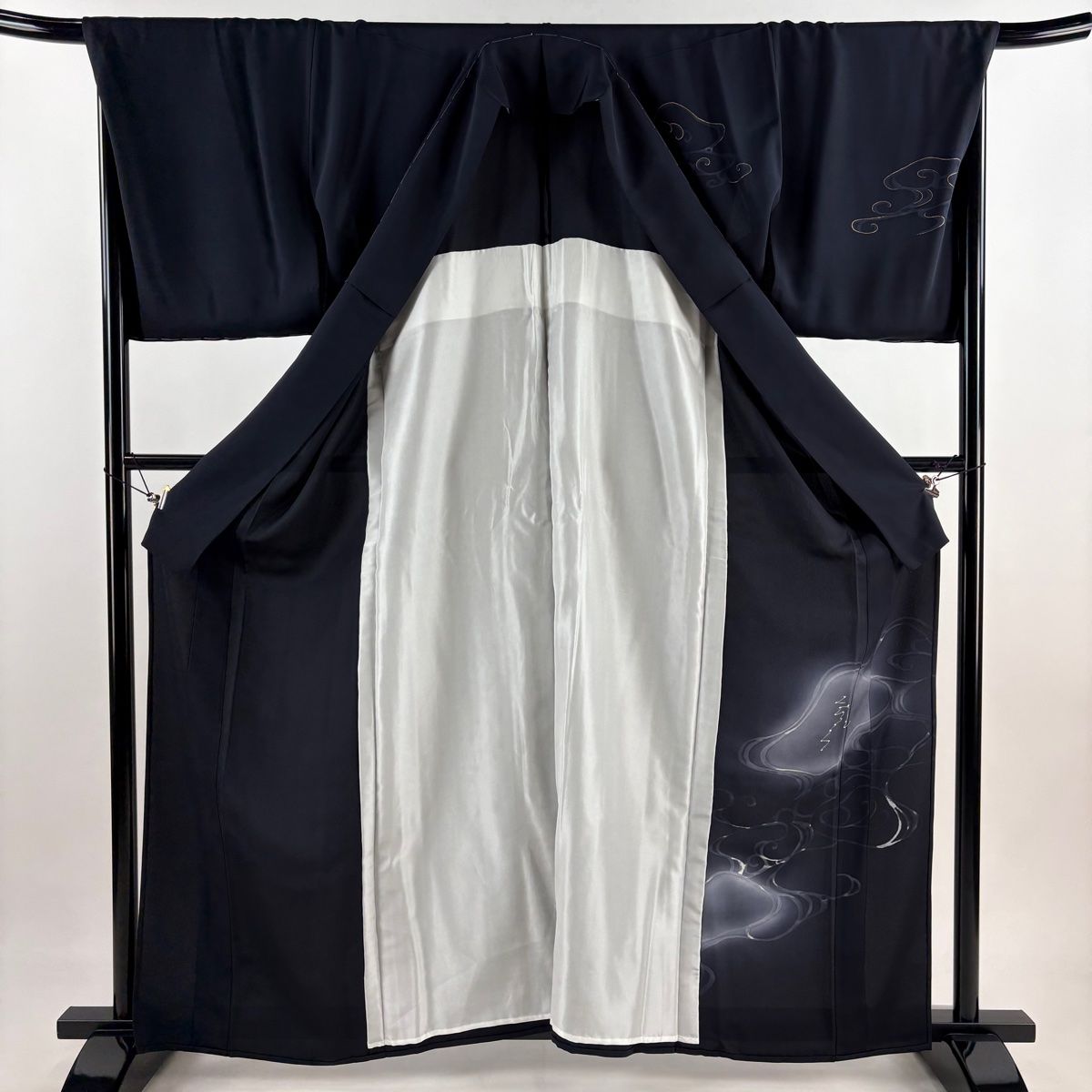 付下げ 身丈163 cm 裄丈67.5 L 単衣 流水 金彩 ぼかし 黒 正絹 秀品