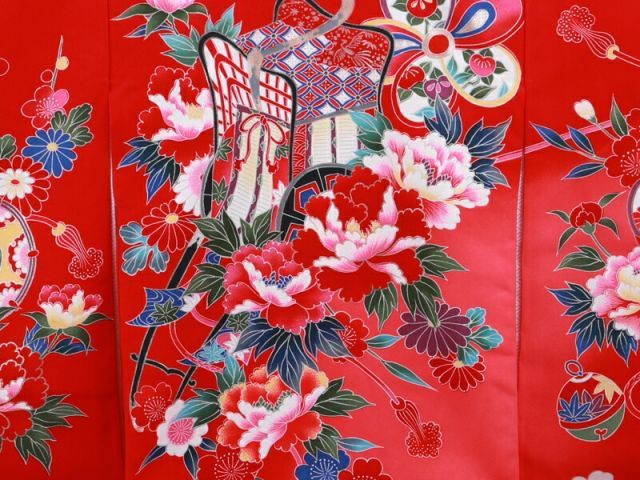 お宮参り 着物 正絹 長襦袢 セット 女児 女の子 子供 産着 祝着 金加工入り un-214 赤