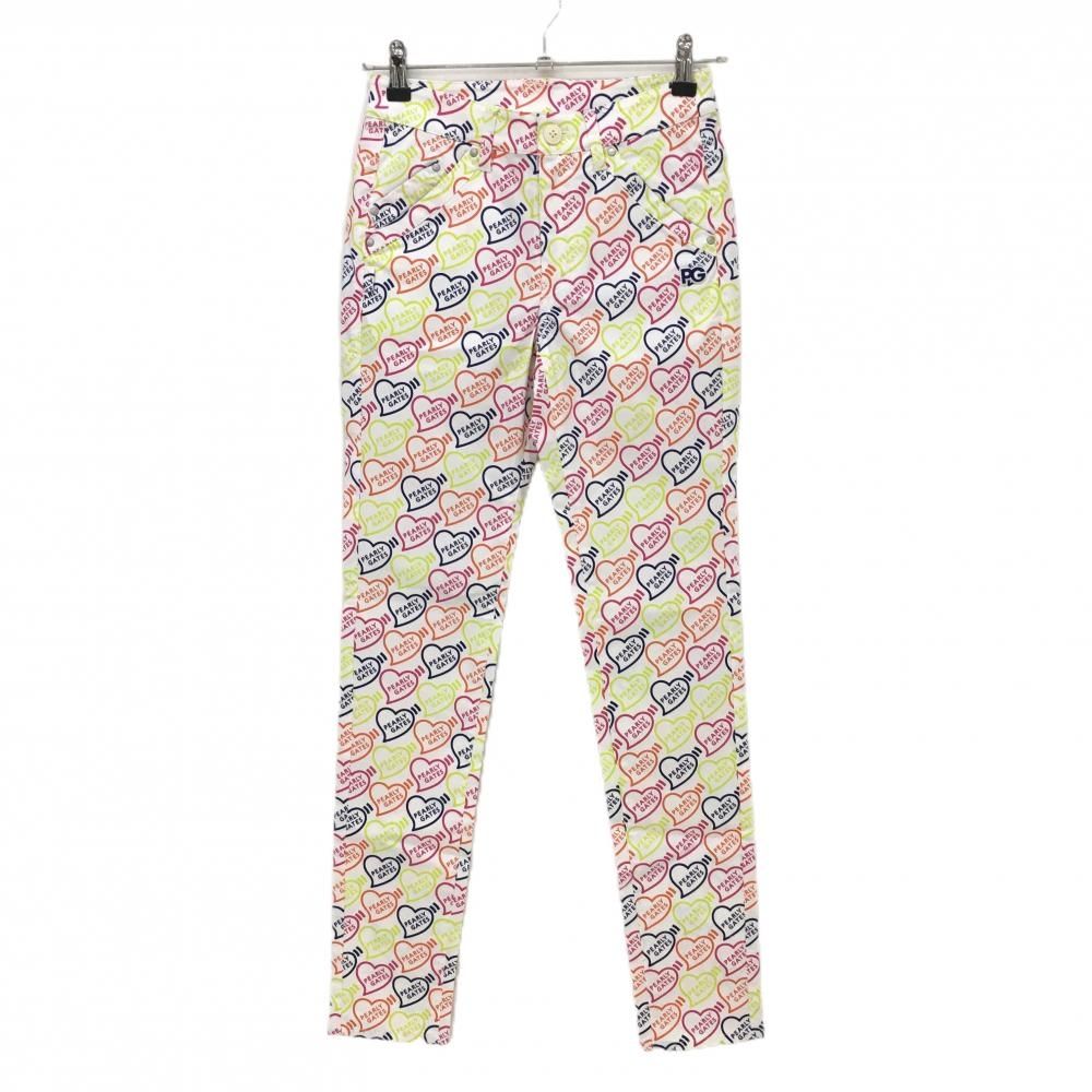 パーリーゲイツ パンツ 白×マルチ ハートロゴ総柄 ストレッチ レディース 00 XS ゴルフウェア PEARLY GATES