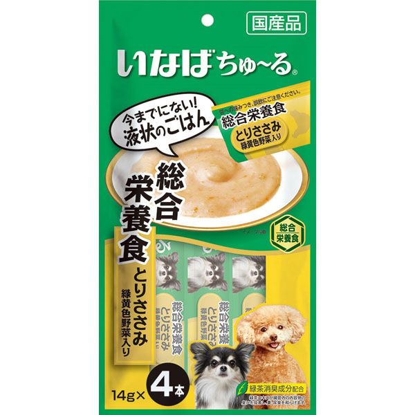 ちゅるっと出して舐めるだけで簡単に水分補給、栄養補給ができる犬用の液状おやつ。普段のごはんに混ぜたり、おやつとして与えたり、お薬を服用するときに混ぜたりと、使用用途はいろいろ。緑茶消臭成分配合で糞尿のにおいを和らげます。