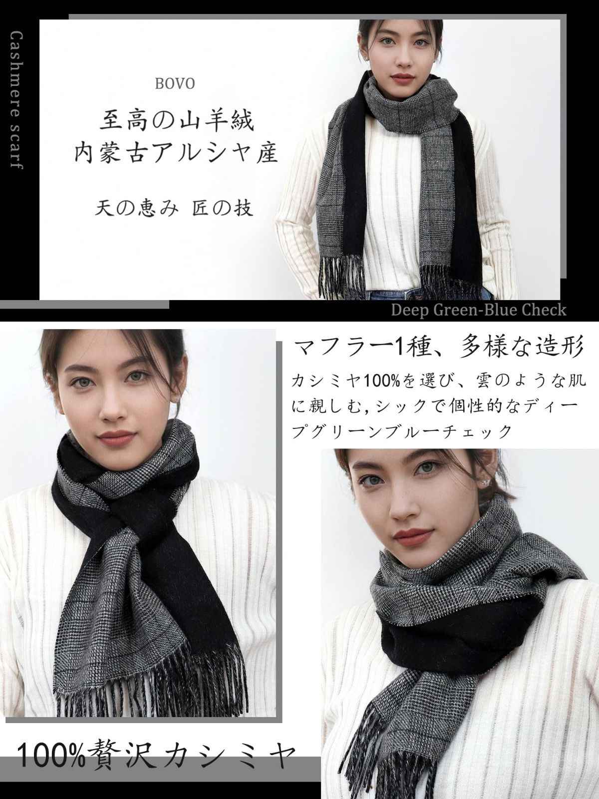 [bovo] カシミヤ リバーシブル マフラー、 ダブルフェイス
