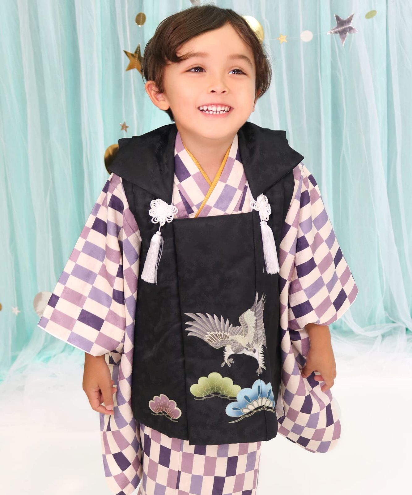 ・七五三の男の子の3歳のお祝いに。着付けに必要なものはすべて揃っているおしゃれな被布セットです。
