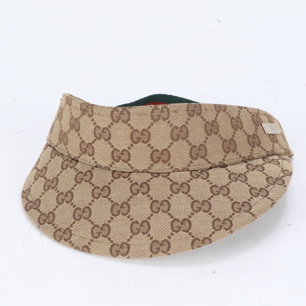 グッチ GG キャンバス シェリー ライン サンバイザー 帽子 キャップ ヘッドウェア 日よけ Lサイズ レディース RCE CJ 12-5