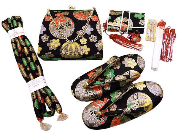 着物美人 送料込み! 女の子箱迫セット M 18cm 3-5歳 黒 金 手毬 m522200