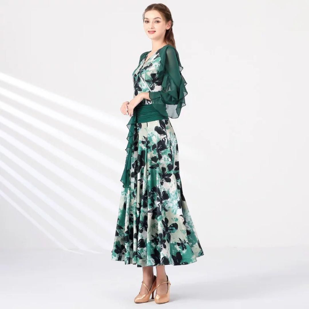 花模様が魅力のワンピースで、スタンダード向きの練習着!おしゃれな瞬間を楽しもう。ダンスパーティーなど着用シーンも多彩に広がる一枚で、あなたのスタイルを華やかに演出します。