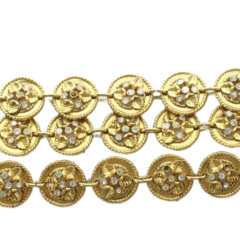 【商品名】ソニアリキエル SONIA RYKIEL ヴィンテージ ブレスレット アクセサリー 3連 ラインストーン SRロゴ ゴールドカラー 金色 ■GY17 /MQ
