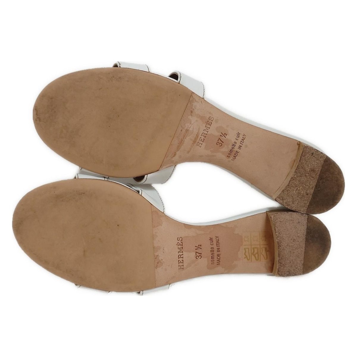 HERMES エルメス ミュール 37 1 2 レディース オアジス 071002 Z 白 オープントゥ レザー