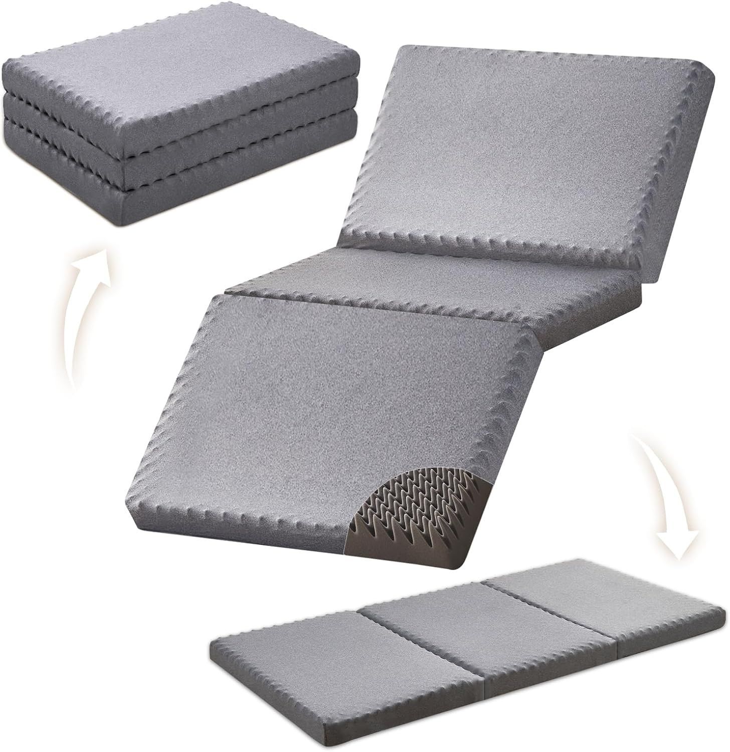 【軽量で収納も簡単】三つ折りデザインで簡単収納と持ち運び このマットレスは、使わない時には簡単に三つ折りにしてコンパクトに収納できます。旅行やお客様用に便利で、収納スペースを節約できます。さらに、軽量設計なので、持ち運びも簡単です。広げるだけで即使用可能で、寝心地を損なうことなく快適に眠れます。また、取り外し可能なカバーは水洗い可能で、常に清潔な状態を保つことができます