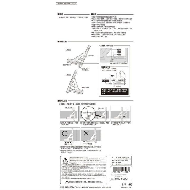 軽くて丈夫な素材マグネシウムを採用丸鋸のすべりの良いステンレス鋼ガイド面フロア材幅303mmに最適なサイズ300±0.3以内の高精度高さ12の突き当てで反った床材をしっかり押さえて切断゙できる裏目盛付丸鋸ピッチ目盛付