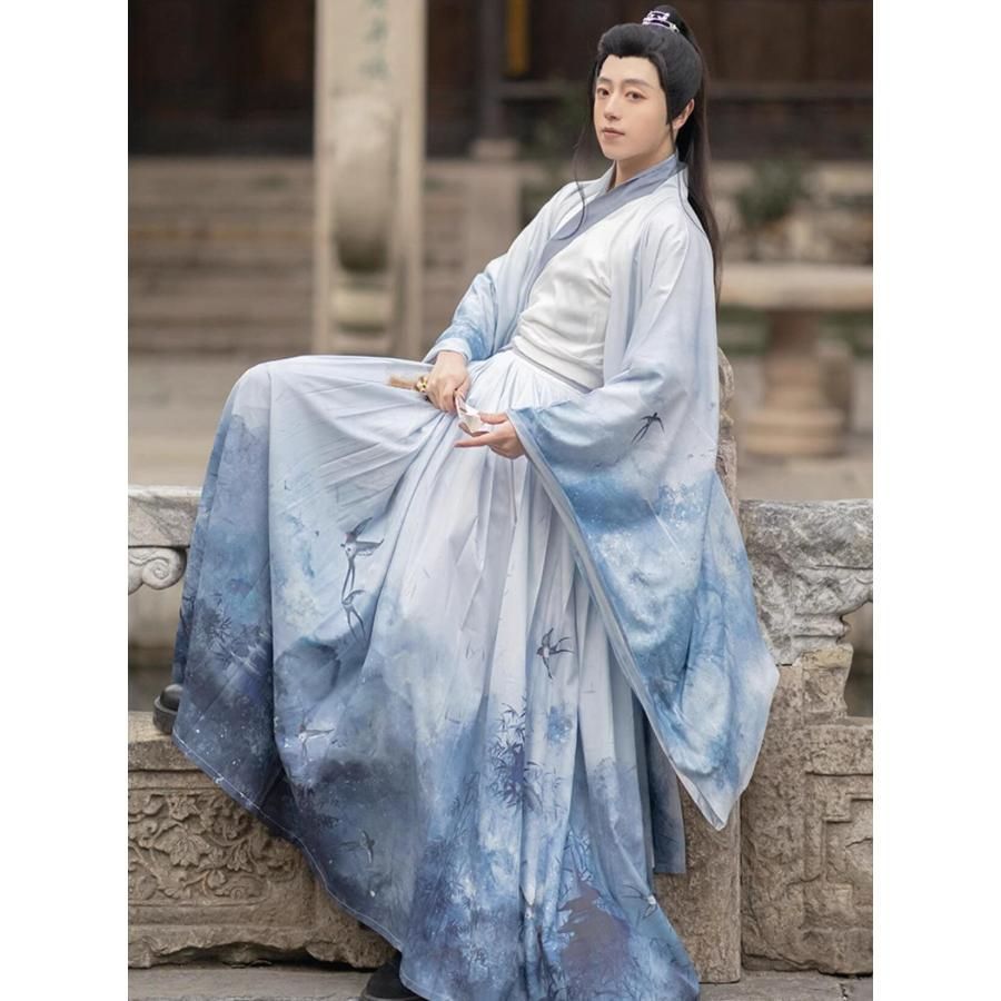 高品質 漢服 中華コスプレ 衣装 華流 メンズ レディース ペアルック チャイナ服 大人 男女 中国古代服装 白系 山水画 水墨 プリン