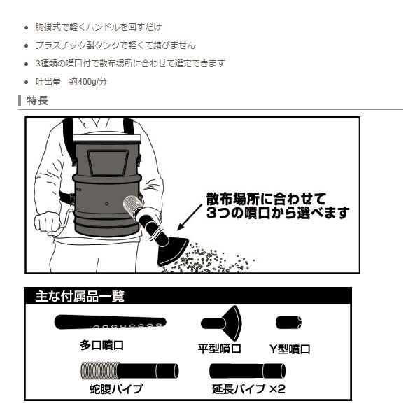 ・胸掛式で軽くハンドルを回すだけで散布できます。