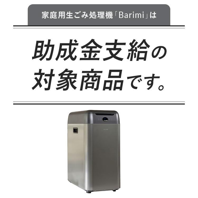 生活空間を清潔に保ちたい方に最適な「生ごみ処理機バリミBarimi」は、先進の3段階ハイブリッド脱臭装置を搭載し、快適な室内環境を実現します。コンパクトながらもパワフルなこの家庭用生ごみ処理機は、キッチンにすっきりと収まり、インテリアを損なうことなく、日々の生ゴミを微生物の力で分解処理。初回のセットアップ後は、全自動で生ゴミを半永久的に分解し続けるため、手間をかけずに衛生的な生活を送ることができます。 さらに、助成金対象商品であるため、環境に優しい選択を支援する制度を利用することが可能です。毎日の生ゴミ処理をもっと手軽に、もっとエコに。バリミBarimiで、新しいキッチンライフを始めましょう。 【修理などでご返送の際】 修理などでお送りいただく際は、中の微生物基材を取り出し、袋に入れて保管をお願いいたします。 微生物基材が入ったまま輸送されると、輸送中の揺れなどで本体の色んな箇所へ入ってしまい故障の原因となります。