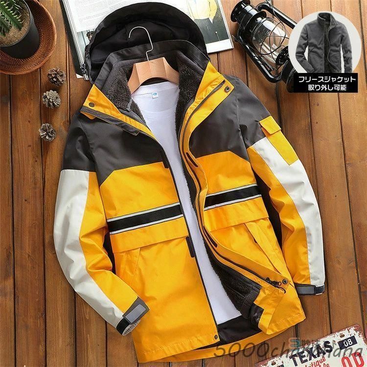 3 in 1 マンパ マウンテンパーカー メンズ 撥水 防風 ライナー付き トレッキング アウトドア 登山 2点セット 登山ウェア キャンプ 自転車 バ