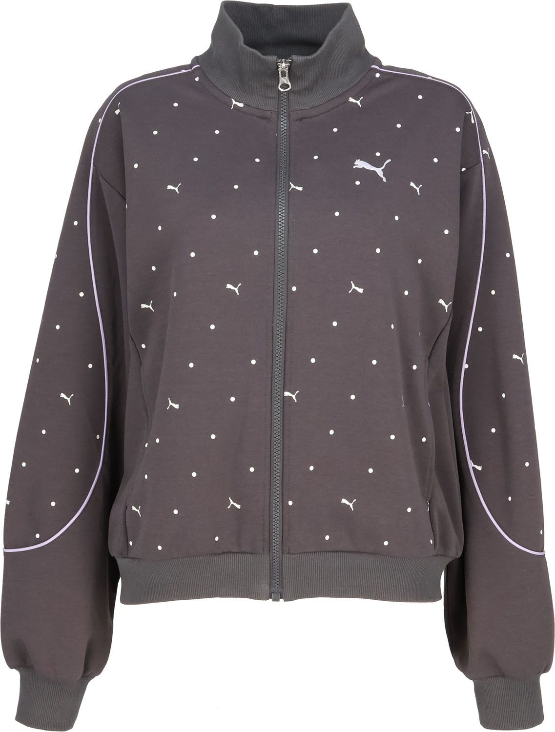 [ CORE HERITAGE ]コレクションから、遊び心と洗練されたデザインが融合したトラックジャケットが登場。全体にあしらわれた PUMA キャットロゴとドット柄が、シンプルなシルエットに個性と可愛らしさをプラスし、着るだけでスタイルのアクセントに。軽量で柔らかな素材を使用しており、快適な着心地と動きやすさを両立。ジッパー仕様で着脱もスムーズに行え、両サイドのポケットが実用性を高めます。日常のカジュアルスタイルはもちろん、軽い運動やアウトドアシーンでも活躍する、機能性とデザイン性を兼ね備えた万能アイテムです。同コレクションのパンツ【品番 : 690175 】と合わせてセットアップコーデもおすすめです。
