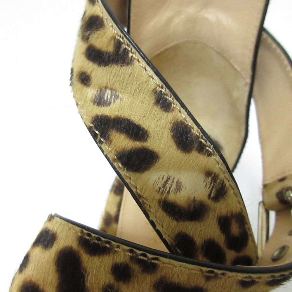 Gianvito Rossi ジャンヴィトロッシ レオパード ハラコ ストラップ チャンキーヒール サンダル サイズ37 24 cm キャメル レディース 古着