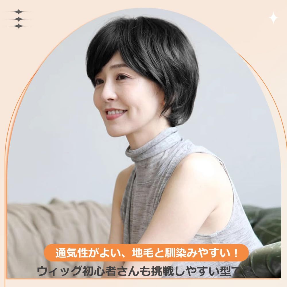 白髪隠し 自然 手植え 脱毛用 母のウィッグ ハハかつら 医療用 斜め前髪 女性用 人毛100% 女性 おしゃれ かつら 通気 フルウィッグ ヘアネット ショート 中高年 付き ウィッグ P-Z