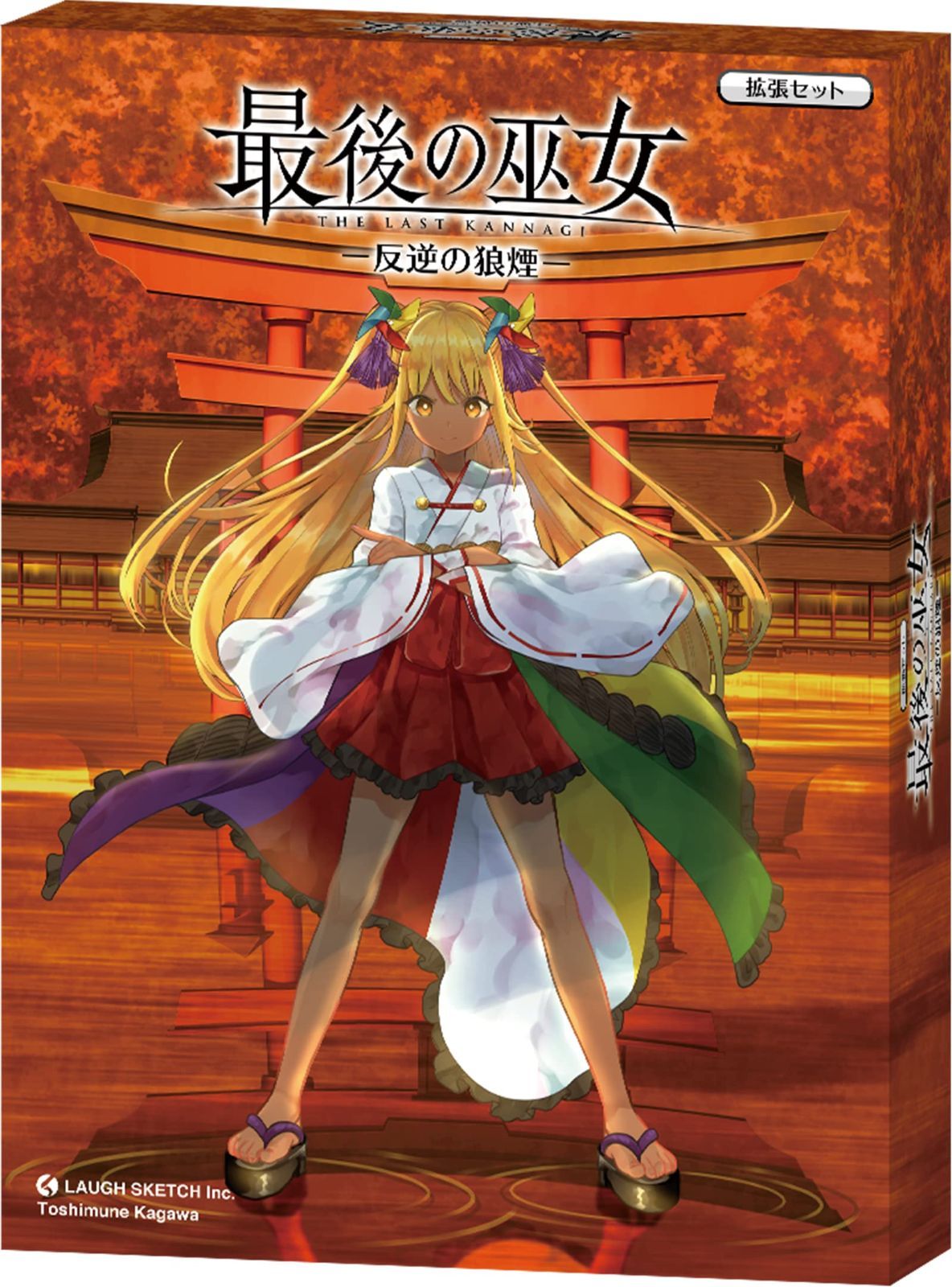 ラフスケッチ(LAUGH SKETCH)の完全オリジナルゲーム第二弾「最後の巫女」の拡張セット。 「かわいい女の子」「重厚な世界観」「濃密なプレイ体験」をコンセプトに、本作でも巫女の少女が活躍します。 ◆世界観 最後の巫女たちが伊勢に集結する頃、他の地にも穢れに抗い続ける巫女たちがいました。 その地の名は厳島。そこには、かつて最強の護りと謳われた出雲の生き残りの巫女もいました。 出雲を迎え入れた厳島の護りは強固であり、人類のもうひとつの希望でもありました。 しかし、長年伊勢と競い合ってきた出雲にとって、出雲の陥落と伊勢の隆盛は許し難いものでした。 そしてついには出雲は厳島と結託し、希望の地厳島を捨て、伊勢を我が物にしようと侵攻を開始したのです。 ◆ゲームの見どころ(自由に組み合わせてゲームをプレイできます) ・拡張その1:新たな加護カードが登場!2種類の加護カードから選べるぞ! ・拡張その2:新たな奉納が登場!奉納アクションがバリエーション豊かに! ・拡張その3:新たな啓示が登場!ゲーム中盤で得られるボーナスが追加され、ゲームの組み立てが変化するぞ! ・拡張その4:新たなプレイアブルな巫女が登場!これまでにはない戦略で新しいゲーム体験を! ◆概要 プレイ人数:24人 プレイ時間:6090分 対象年齢:14歳以上 ジャンル:ストラテジー、エリアコントロール、エンジンビルディング ゲームデザイン:香川俊宗(Toshimune Kagawa) 企画:LAUGH SKETCH Inc. 制作:LAUGH SKETCH LAB ※注意:本作は拡張セットです。ゲームで遊ぶには別売りの「最後の巫女」が必要です。