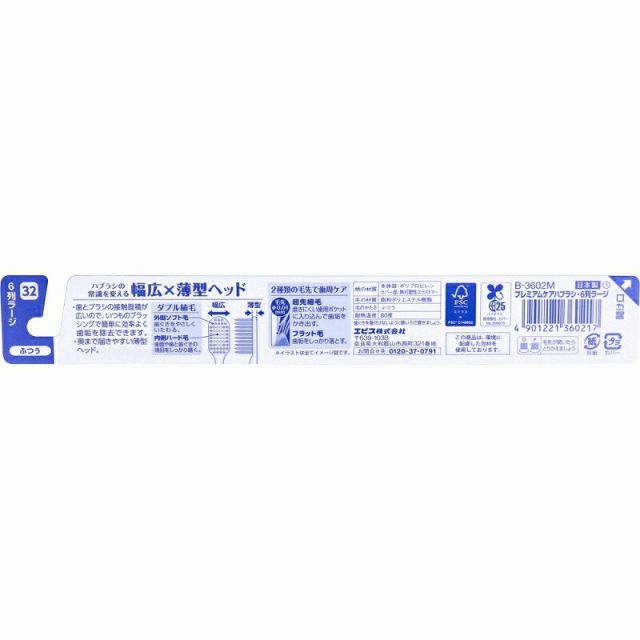 エビスプレミアムケアハブラシ6列ラージふつう1本入B-3602M