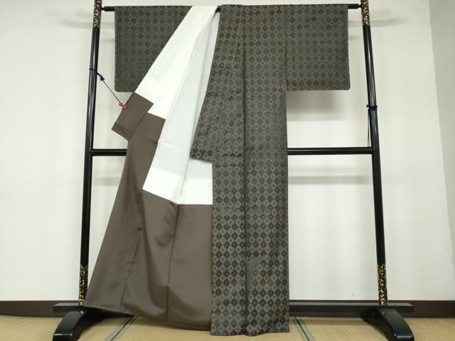 平和屋着物 本場大島紬 現代龍郷絣 菱文 正絹 ud