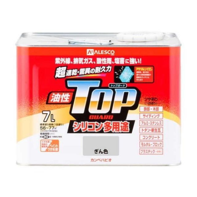 カンペハピオ ペンキ 塗料 油性 つやあり シリコン樹脂 多用途 超速乾 さび止め剤入り トップガード ぎん色 7 0 L 油性塗料