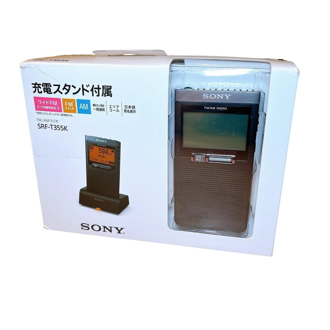 ソニー PLLシンセサイザーラジオ SRF-T 355 K FM|AM|ワイドFM対応 片耳イヤホン|充電台付属 ブラック B ○1621