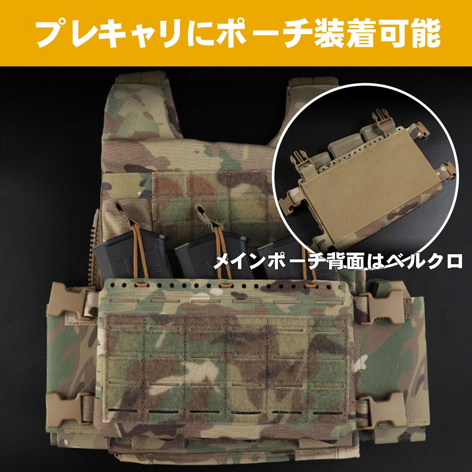 ? 【 500Dナイロン・超軽量 】 Micro Fight Chassis MK Vを再現したチェストリグです。500D強化ナイロン生地を使用しているので、耐久性に優れており、重量も400gと超軽量なので、実用性に優れています。 ? 【 実用性抜群 】 メインのプラットフォームには5.56mmマガジンを3本収納できるインサートポーチが内蔵されています。レーザーカットにより開けられた穴を使ってバンジーコードを取り付けてクローズトップにも変更可能です。 ? 【 拡張・多様性が抜群 】 メインポーチは取り外し可能で、プレートキャリアに搭載するマガジンプラカードとして使用することができます。さらにショルダーストラップを搭載しているので、PTT通信機器など取付することが可能です。 ウエストのベルトはバックルなので、簡単に着脱・調整ができます。