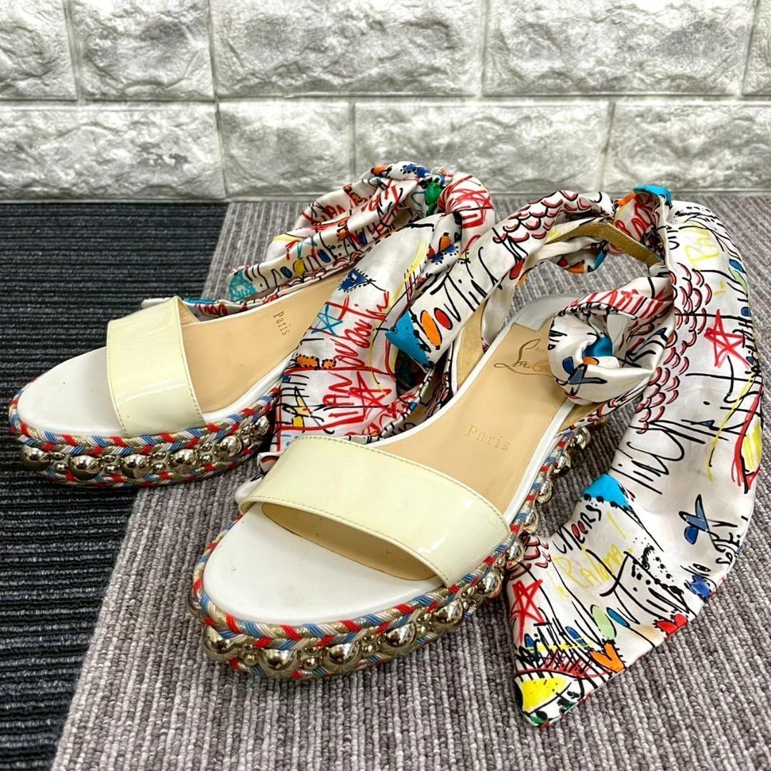 ルブタン パテントレザー マルチカラー リボン スタッズ サンダルになります。