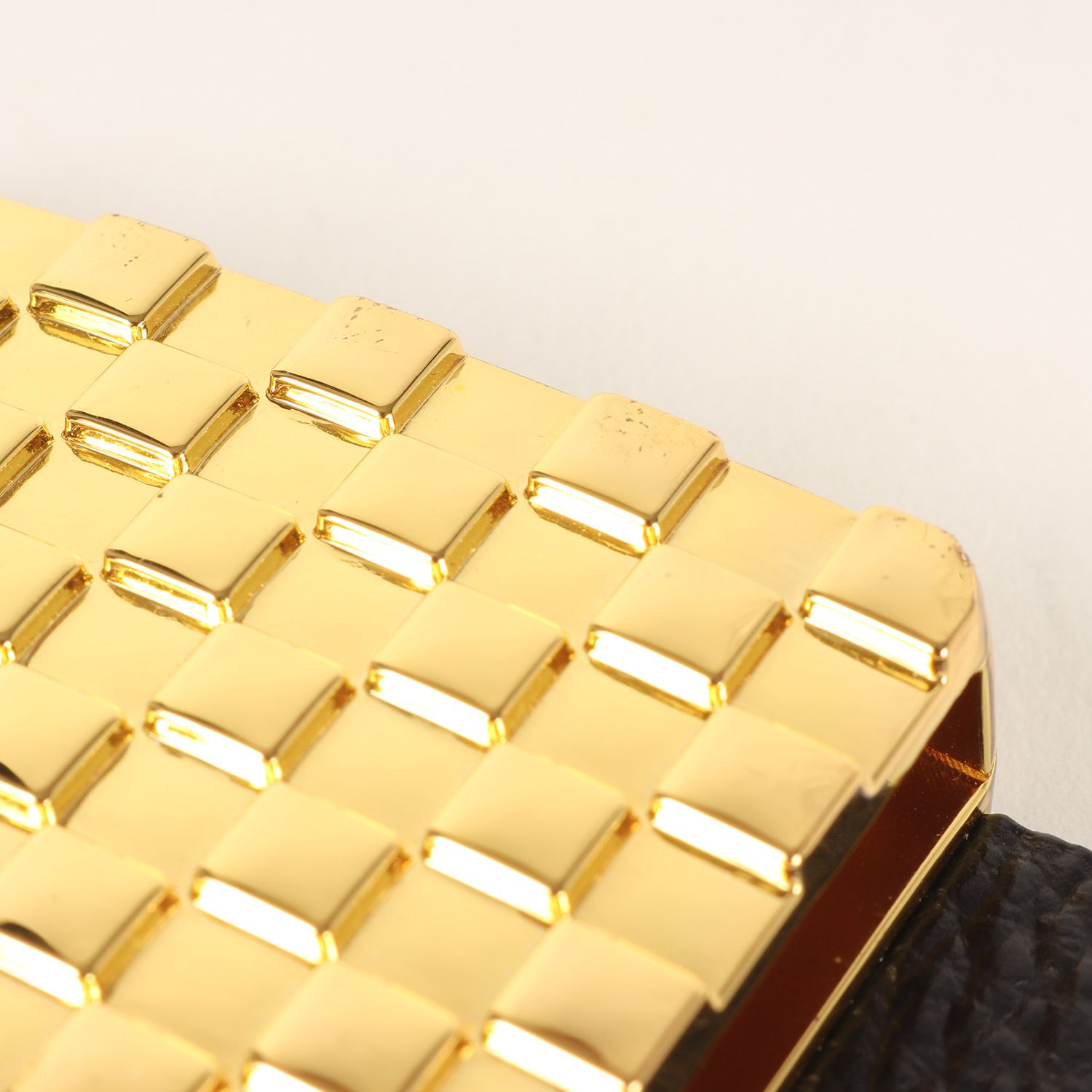 ・格子柄のメタルバックル