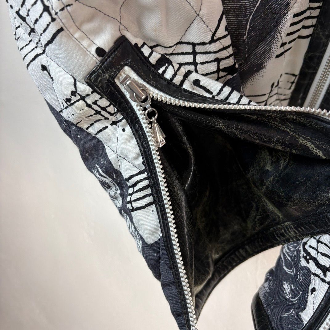 LUNA MATTINO ルナマティーノ 楽譜 × 作曲家プリント キルティングジャケット モノトーン レザーパーツ 90 s アートデザイン