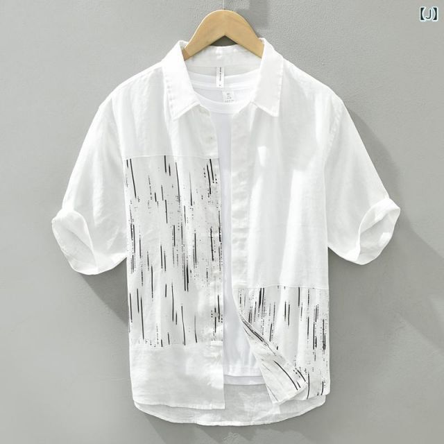 商品名:メンズ ファッション 服 男性用 オシャレ シンプル 大人 かっこいい 大きいサイズ ストリート 紳士服 夏 プリント リネンシャツ 半袖 カジュアル 通気性 コットンリネン 生地 半袖 シャツ