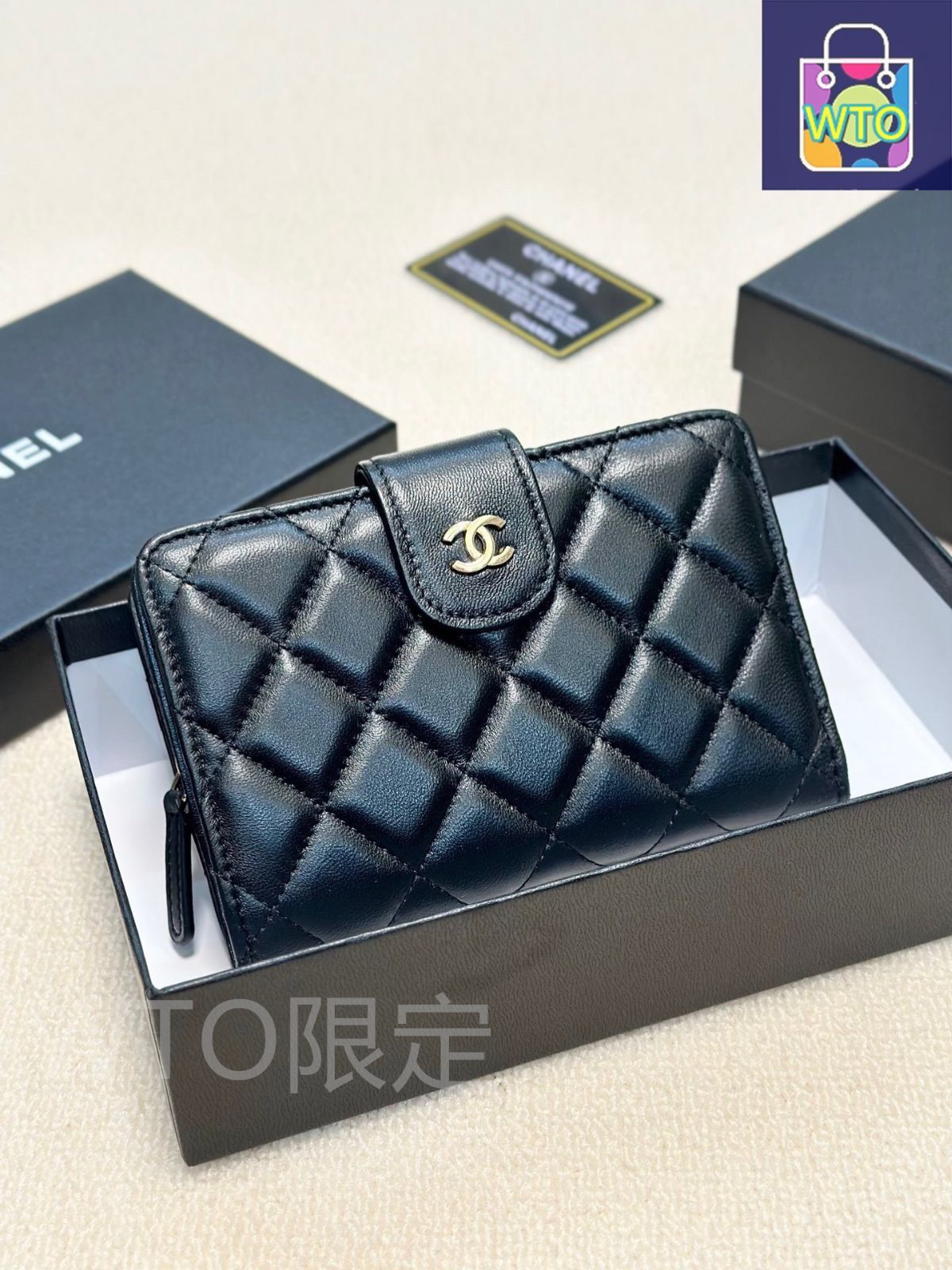 シャネル レディース ウォレット 2つ折り ブラックゴールド&ブラックシルバー 高品質シープレザー -WTO輸入1