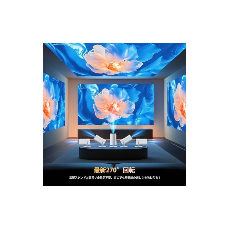 商品名:【新品】 プロジェクター小型 【令和6年11月新登場!明るさプラス&270°回転&自動台形補正】Wi-Fi6瞬時接続 16000LM 天井投影 Bluetooth5.4 300"大画面4k対応 1080Pプロジェクター家庭用 ホームプロジェクターモバイルプロジ