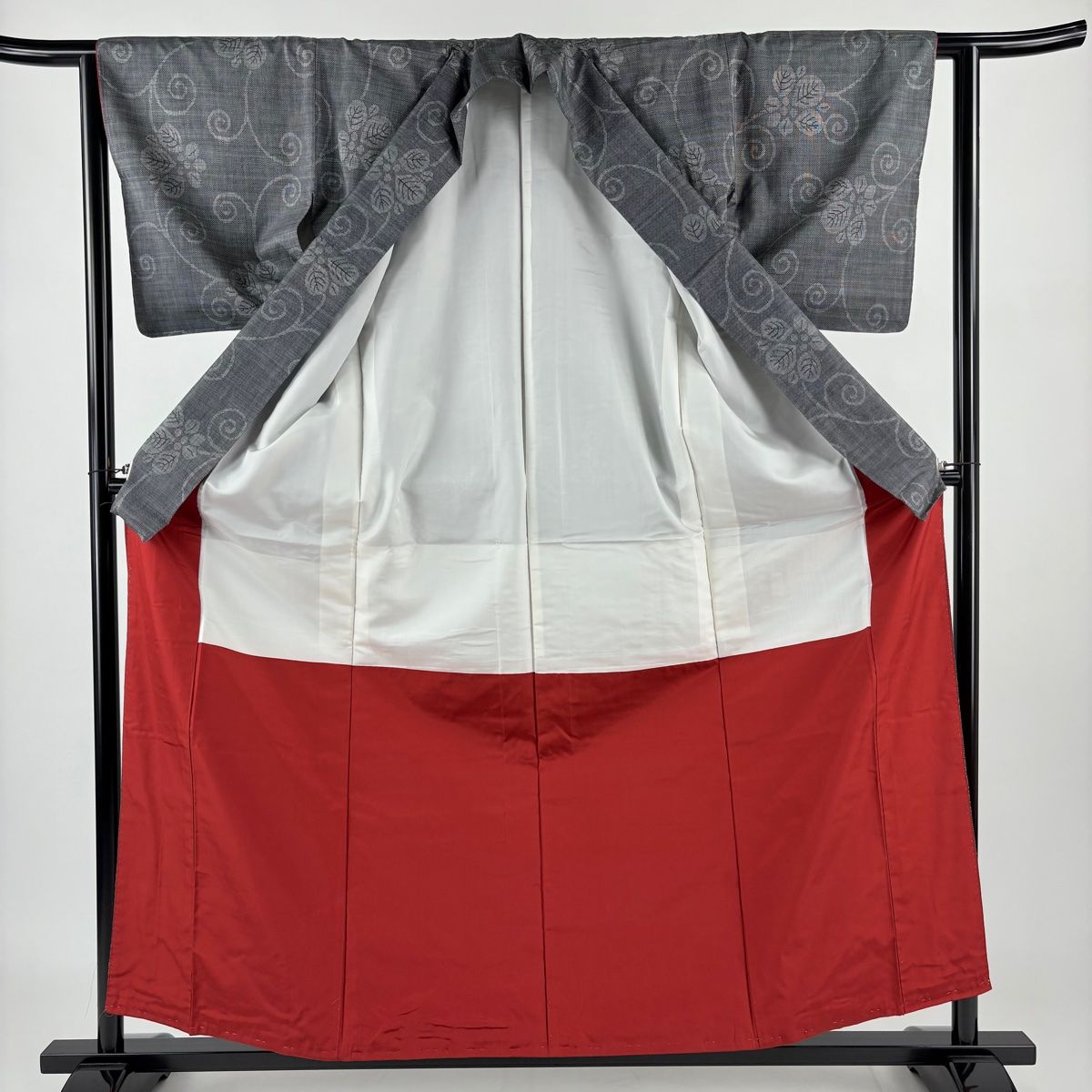 大島紬 身丈159.5 cm 裄丈62 S 袷 花唐草 黒灰 正絹 秀品
