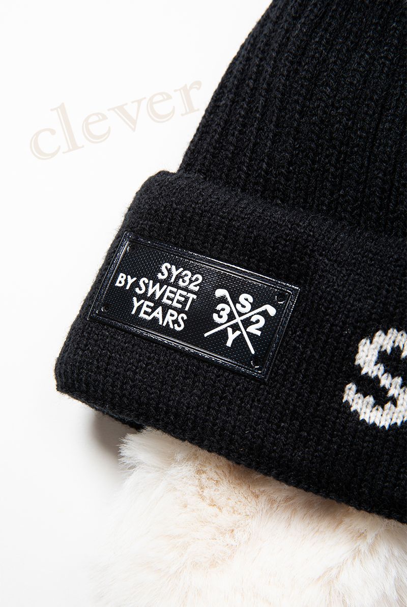 SY 32 ゴルフ フライト型ニットキャップ ニットキャップ ボンボン 耳当て付き BONBON FLIGHT KNIT CAP ロゴ ニット帽 レディース 帽子 キャップ SYG-24 A 102 xaz-syg-24