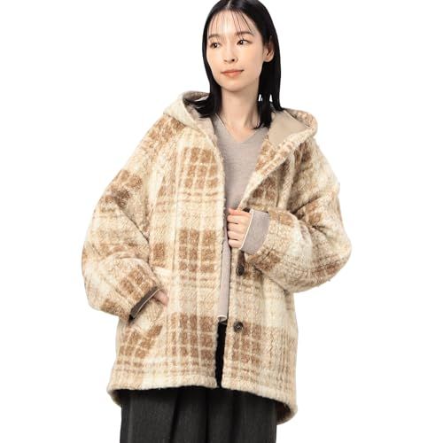 [コムサイズム] (ONIGIRI) ループチェック フーディーコート 52-25MI71-204 F ベージュ