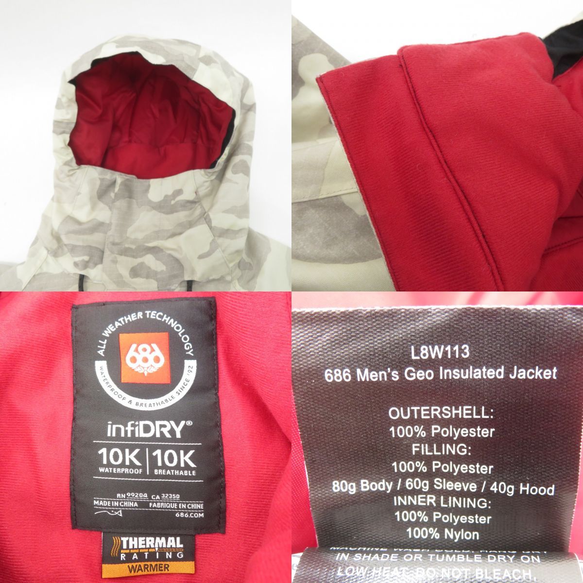 686 シックスエイトシックス スノーボード ウェア ジャケット カモフラ 切替 Lサイズ